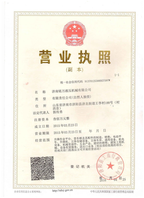 +濟(jì)南銘萬液壓機(jī)械有限公司【原濟(jì)南機(jī)械廠】,是全國制造液壓升降機(jī)、升降平臺的廠家,產(chǎn)品有八大系列六十多個品種,規(guī)格齊全、質(zhì)量穩(wěn)定、安全可靠、方便快捷;產(chǎn)品銷往全國各地,深受用戶好評。升降機(jī)廠家技術(shù)力量雄厚,產(chǎn)品設(shè)計(jì)先進(jìn)、工藝成熟、實(shí)驗(yàn)檢測手段完善,“質(zhì)量第一,用戶至上”是我們的宗旨。 本公司采用先進(jìn)的管理手段,嚴(yán)密的質(zhì)量監(jiān)控體系和良好的售后服務(wù)隊(duì)伍為我們的產(chǎn)品走向市場創(chuàng)造......